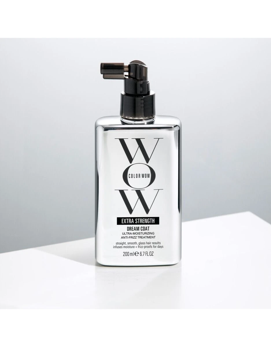 Ontrafel de magie van glanzend, glad haar met Color Wow Dream Coat Extra Strength! Deze krachtige, ultra-hydraterende anti-frizz behandeling transformeert droog, uitgedroogd en krullend haar tot glasachtig, glad en rechte lokken, bestand tegen kroezen voor wel 3 tot 4 wasbeurten.