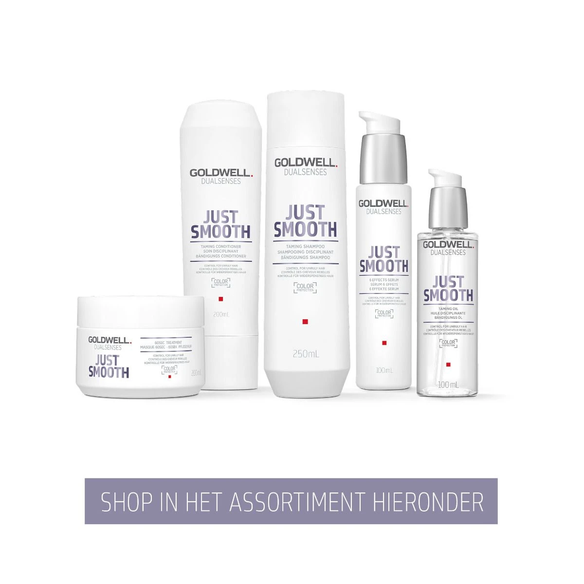 De Goldwell Dualsenses Just Smooth 60 sec. Treatment 500ml regenereert het haar direct tot 100% in 60 seconden. Het haar voelt na gebruik zacht en handelbaar aan. Geschikt voor in de salon en voor thuis.