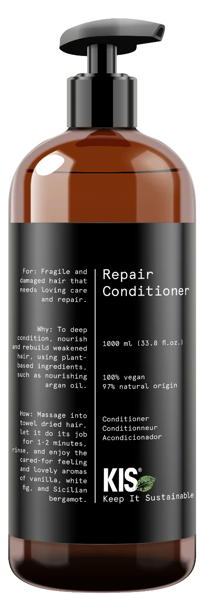 KIS Green Repair Conditioner is 100% vegan, niet op dieren getest en vrij van parabenen, sulfaten, SLS’s en siliconen. Dit maakt de conditioner uitermate geschikt voor de Curly Girl Methode. Tevens is de verpakking gemaakt van gerecycled materiaal.