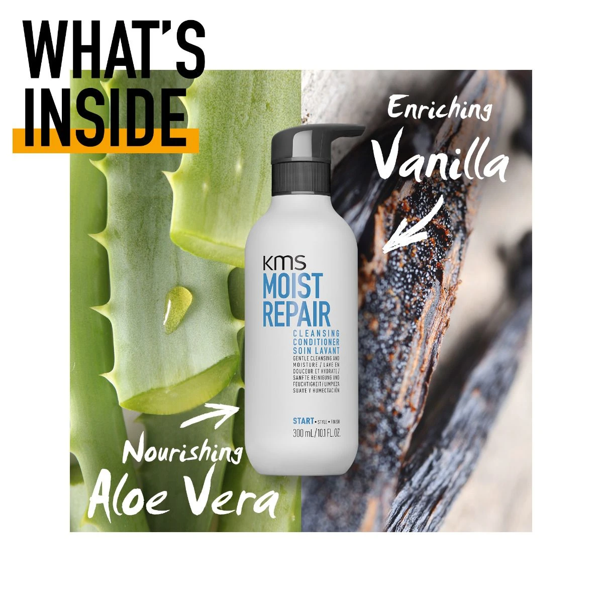 KMS heeft deze MoistRepair haarverzorgingslijn speciaal voor droog en beschadigd haar ontwikkeld. Na gebruik van deze conditioner wordt het haar gevoed. Wanneer het haar droog is, betekent dat vaak dat er te weinig vocht aanwezig is. Dit kan komen door meerdere factoren, bijvoorbeeld door hitte of als gevolg van een chemische behandeling. De MoistRepair Conditioner herstelt het haar en hydrateert het van binnenuit tot in de punten. Door de hydraterende werking van de conditioner gaat het haar weer glanzen en ziet het er natuurlijk uit. De elasticiteit wordt direct verbeterd en het haar is na gebruik gemakkelijk doorkambaar. Voor een optimaal resultaat gebruik je de MoistRepair Shampoo voorafgaand aan de conditioner.