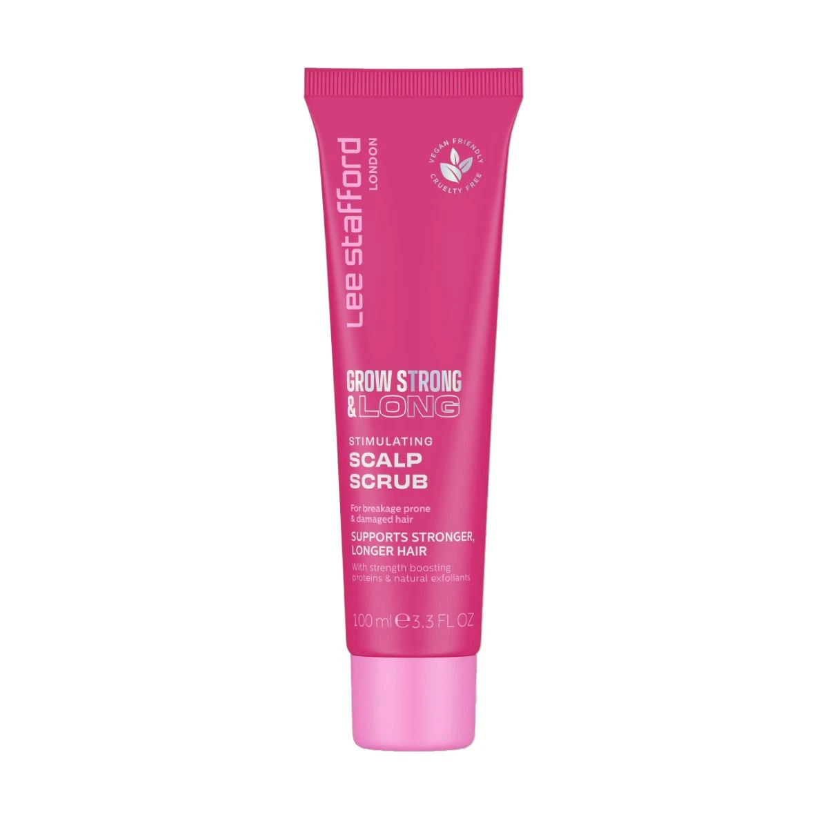 Lee Stafford Strong & Long Stimulating Scalp Scrub is vegan en cruelty free.