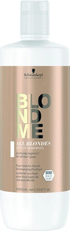 Schwarzkopf BlondMe All Blondes Detox Shampoo is verkrijgbaar in 300ml en 1000ml.